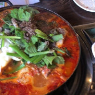 “ Had lunch here with family. I didn't get pictures of all the dishes with ordered. Just the hot stone pot bibimbap and all the sides. My family liked the mandoo soup, the miso one, and the purple rice one. We liked the combination plate too (it had bbq chicken, kalbi, and beef on a bed of onions on a hot plate). The sides were not bad. Nothing stood out as good or bad. Kim cheese was fresh, instead of sour (my preference), salad was sweet, japchae was okay. Restaurant is very cold. However, it was clean and had decent ventilation for people who wanted to cook. Ventilation is directly over each bbq area and is adjustable. Downside no matter what, your clothes will smell like bbq. The servers were patient and helpful. They were attentive and for two people running around with the number of people in the restaurant. It went smoothly. Note: The only thing that bothered me was the price of the lunch specials. Hot stone pot bibimbap cost difference between lunch and dinner was only $2.00. Looking online, size and content in both are the same. Lol apparently few other dishes were similar...so I suggest coming at lunch time, instead of dinner. You'll save a few dollars. ”